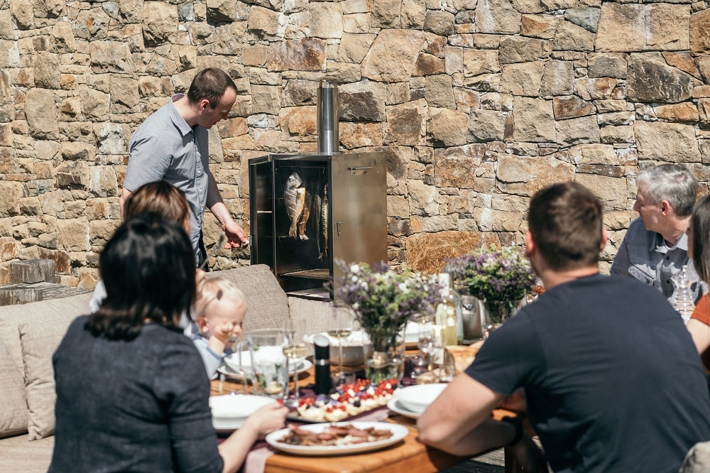 Možná vás napadne, že udírna je spíš záležitostí zabijaček nebo venkova. Ve skutečnosti však do moderní venkovní kuchyně zapadá zcela přirozeně.